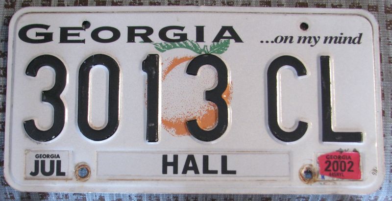 ![]() The "Georgia on my mind" type was issued from 2000 to 2003. With the CL suffix, this is thought to be a commercial plate. Passenger plates did have this serial type (among others) but only in the range QA to YZ. |
