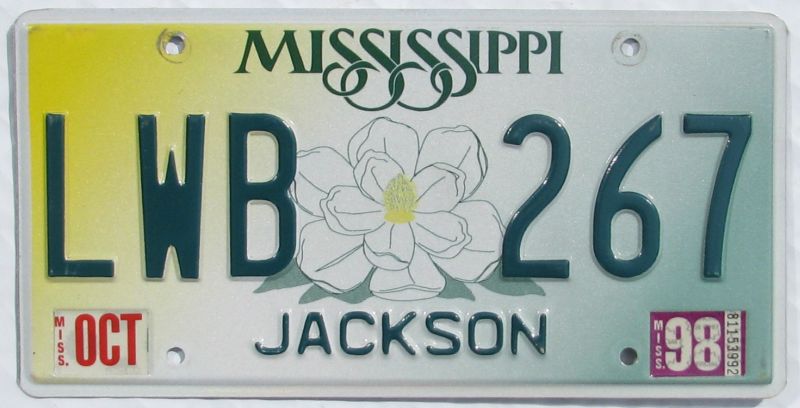 ![]() This plate is from the 1997 to 2008 series. First letter corresponds to month of expiration. There have been two subsequent graphic plate series. |