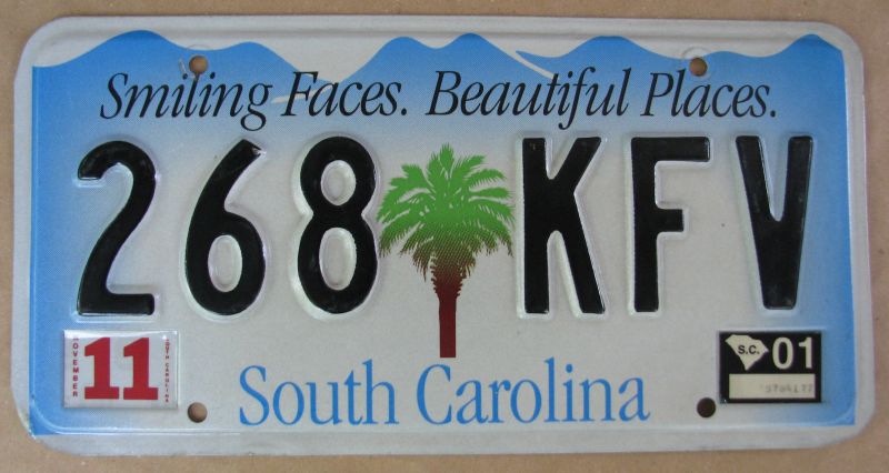 ![]() This plate is from the 1998 to 2007 Green Tree series, the last embossed base plate for South Carolina. The next series is the same except has screen printed serials. There have been two different graphic series since then. |