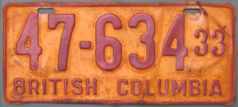 ![]() For the 1937 plate shown above, I purchased and received the plate with a lot of regrets, as it was quite rusty in the background. But the yellow was still quite good, so I figured it was worth it, at least as a temporary filler. The plate was certainly rusty. I immersed it in my Metal Rescue rust removal bath for the better part of the day, and this is the result. Using just the photos as a guide you will likely say that it would have been better left as is. Certainly the yellow is a bit duller, so that is a negative. But the rust is gone and there actually is some black paint now visible, and the plate can be handled without a rusty residue coming off on your fingers. This is one of those iffy results and I can't say for certain what I think. I have since replaced this plate with a better 1937 example. |